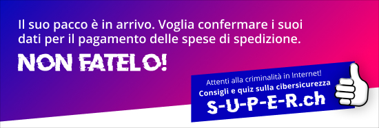 - Non fatevi ingannare da una simile richiesta, cancellate il messaggio o segnalatelo come spam. I veri servizi di consegna o le autorità doganali, difatti, non ricorrono a queste modalità per riscuotere spese di spedizione e tasse.